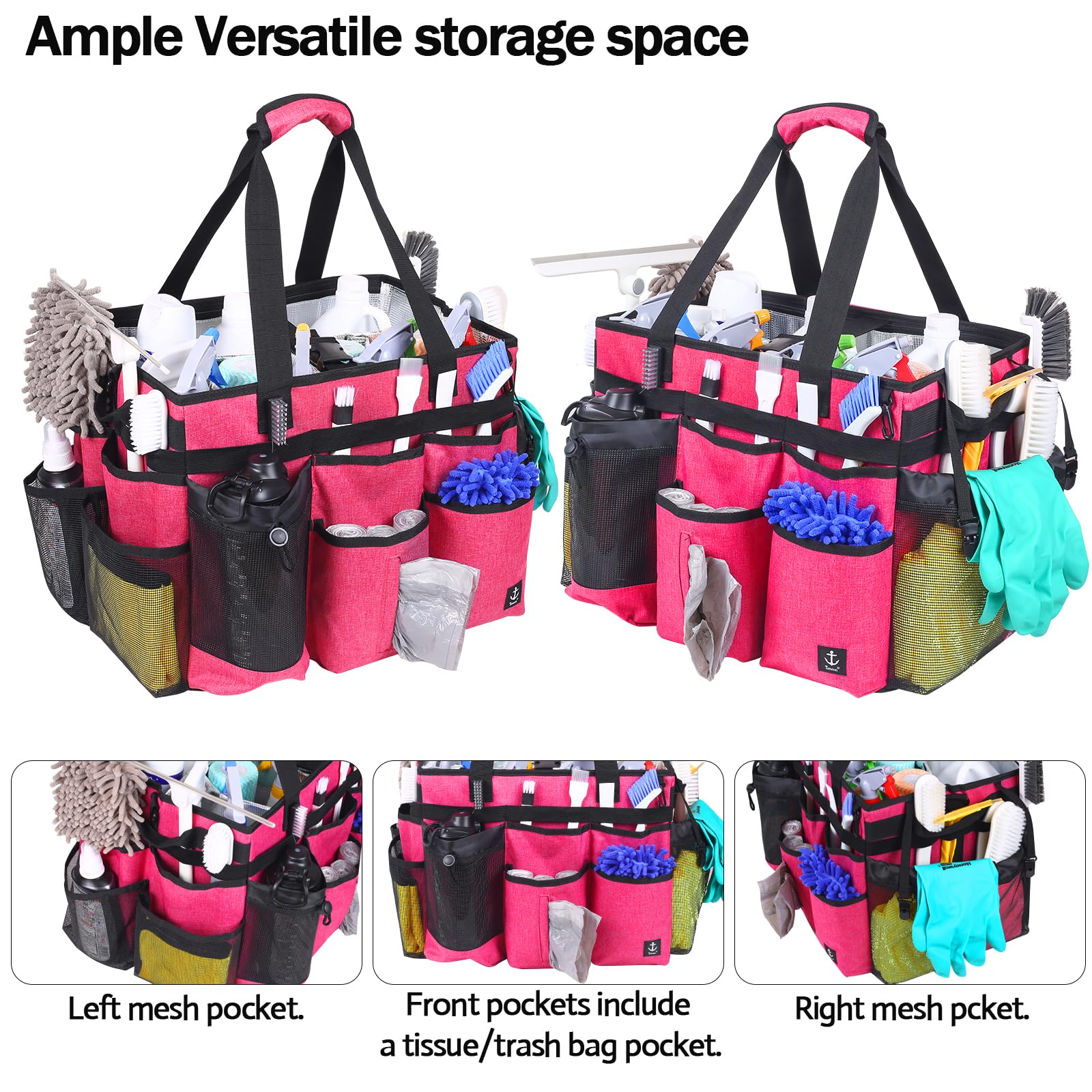 - Enhanced Storage Solutions: With an array of pockets and compartments, including a dedicated water bottle pocket and a separate pocket for trash bags or tissues, this cleaning caddy offers optimal organization for all your cleaning essentials. The exterior includes multiple pockets for quick access to frequently used items, ensuring you have everything at your fingertips.