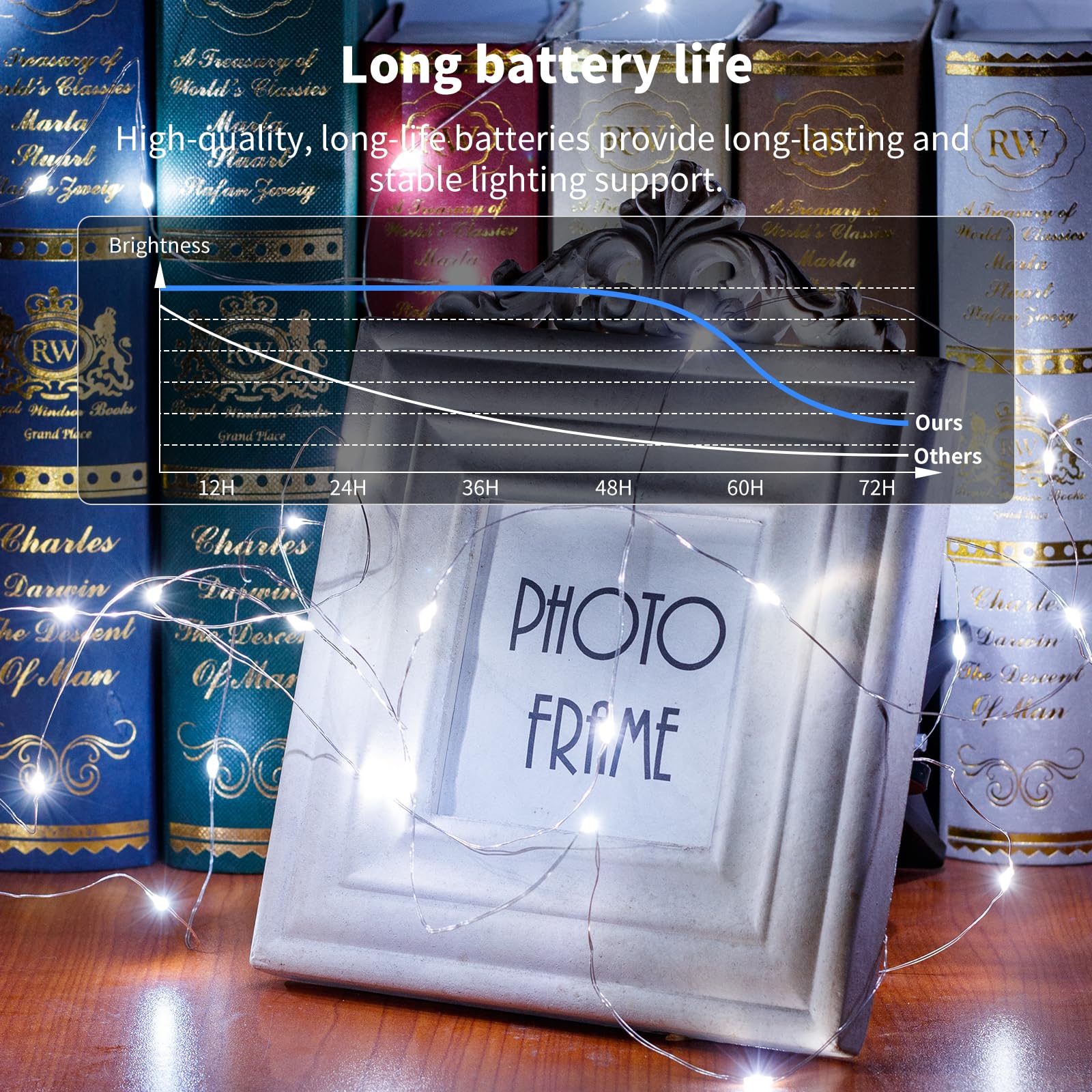 - Convenient to Use: Small battery box with on/off switch is easy to operate and hide, and can last up to 48 hours of continuous illumination (unplugged), and a small screwdriver is attached to make battery replacement a breeze, safe and secure operation, and the ultra-thin flexible silver copper wire makes it easy to place the string of lights anywhere you like, whether it's a photo, a shelf, a wall and other scenes in the home, or a wedding decorations and other special occasions, all of them are easy to fit!