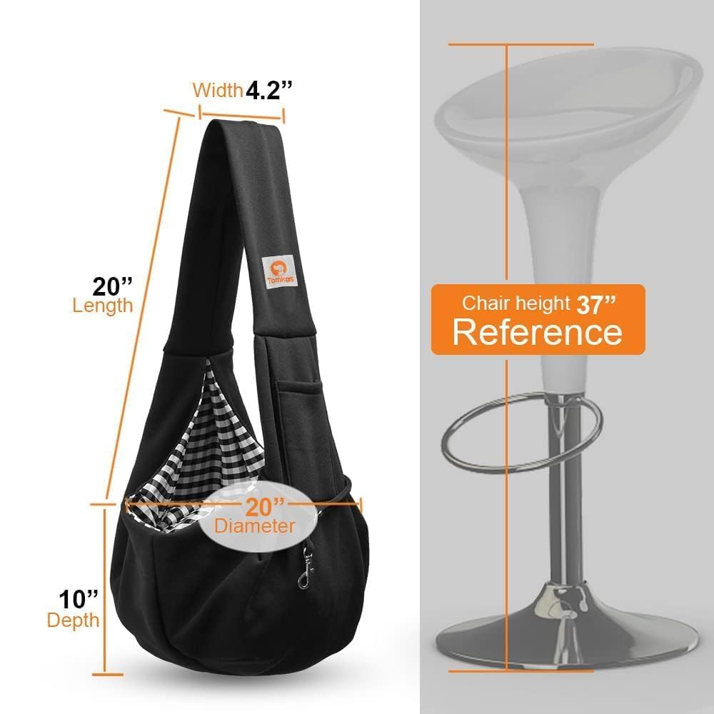 Tomkas Small Dog Sling Carrier - Classic Pocket & Classic Strap - for 3-10 lbs Pets(Black)