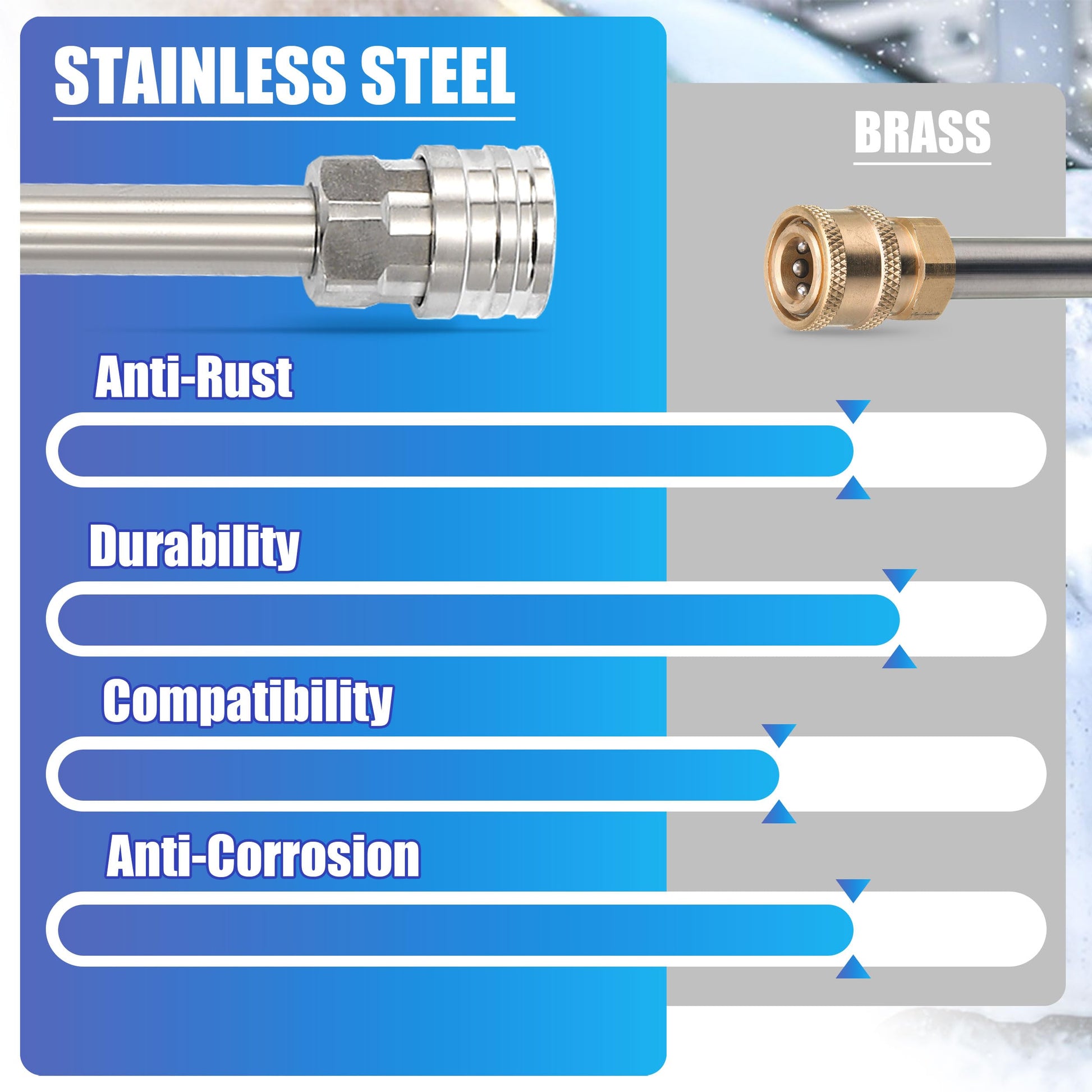 - DOUBLE-ENDED DESIGN: The double-tip attachment has a unique two-end design. One end is longer for the pressure washer nozzle, and the other is shorter for the foam cannon. This setup ensures smooth water flow when using the nozzle, even with the foam dispenser attached