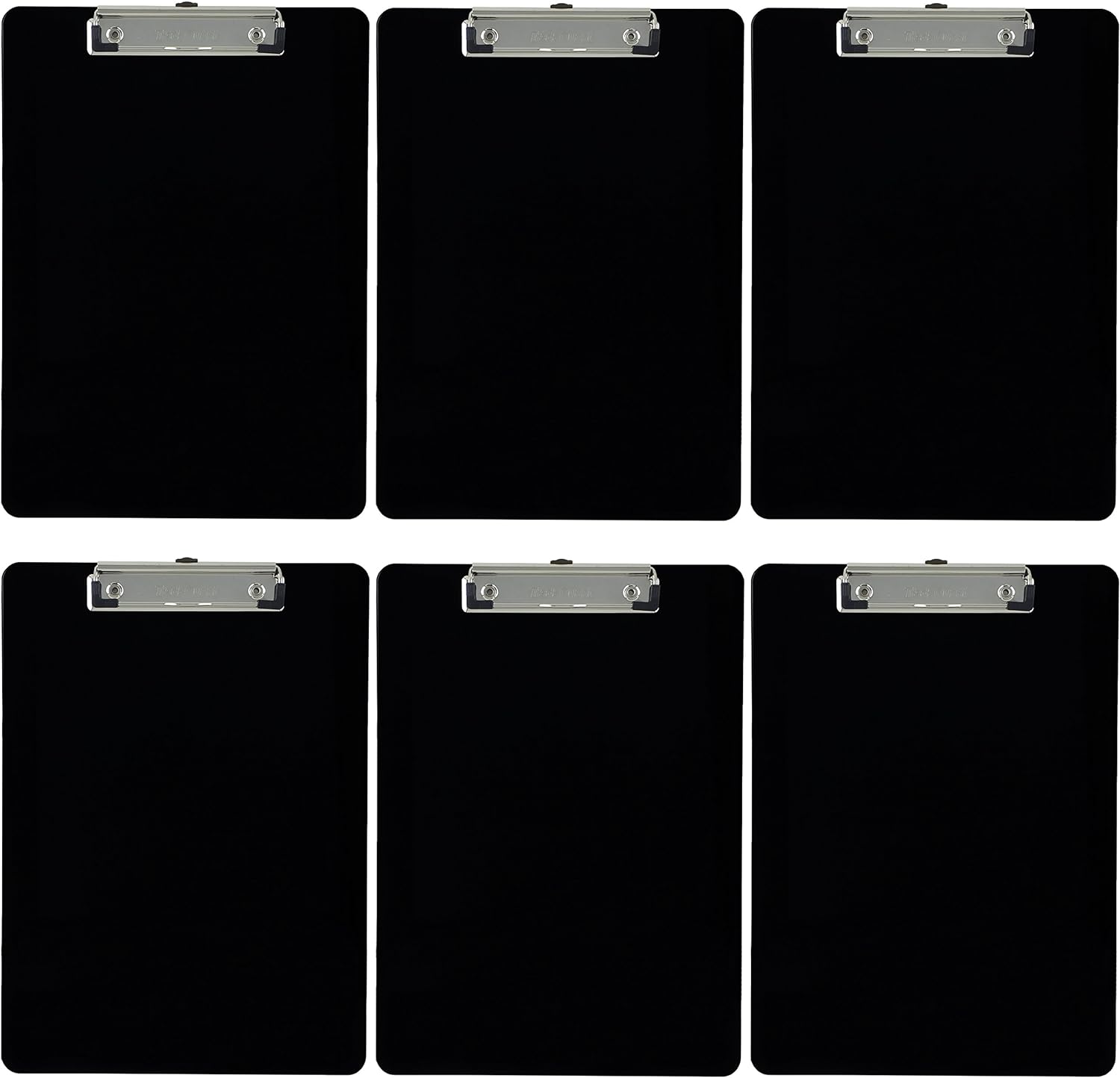 Trade Quest Plastic Clipboard Opaque Color Letter Size Low Profile Clip (Pack of 6) (Black)