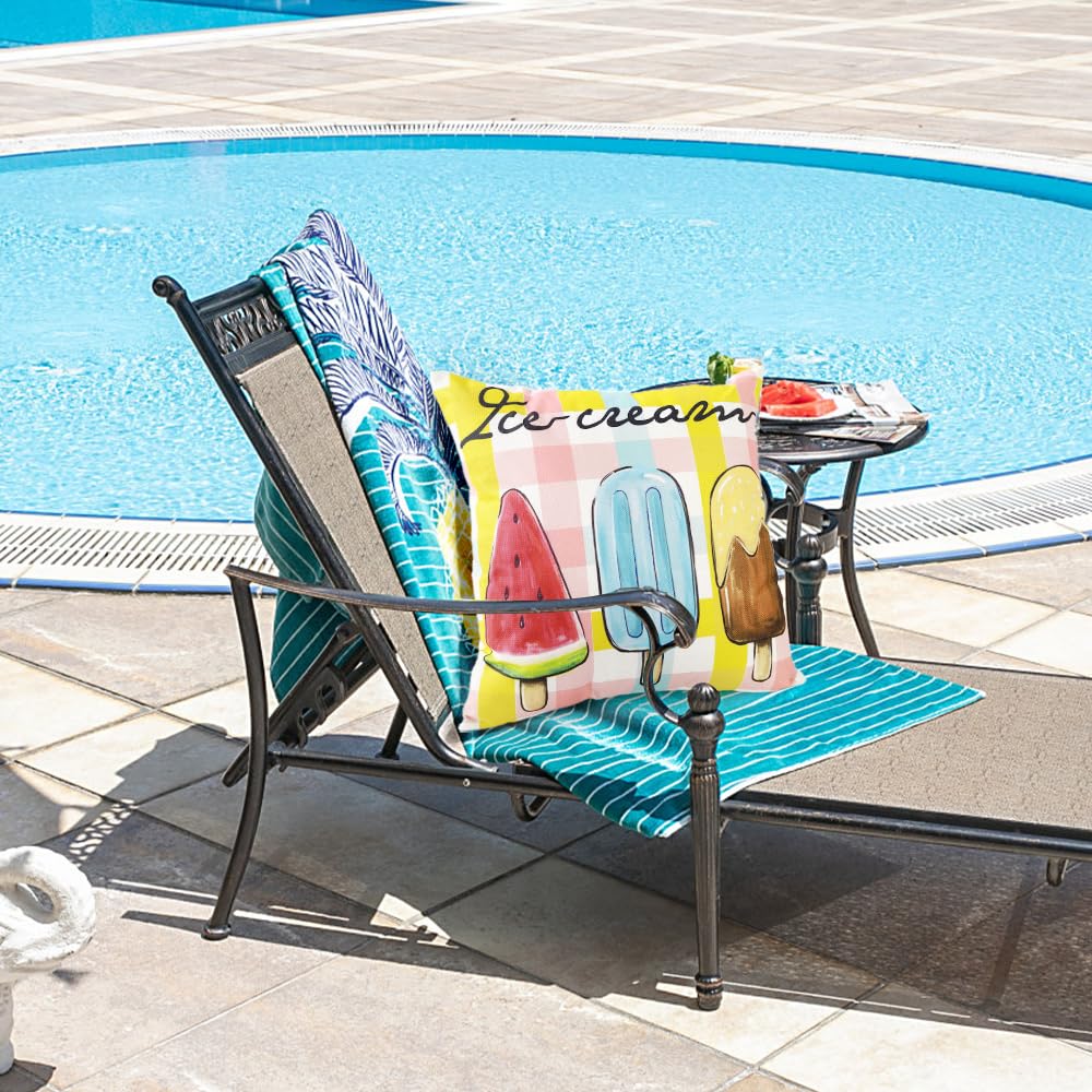 Vellibring Summer Pillow Covers 18x18 Happy Summer Throw Pillow Covers Hello Sunshine Ice Cream Pillow Covers for Farmhouse Decoration Indoor Outdoor Home Decor
