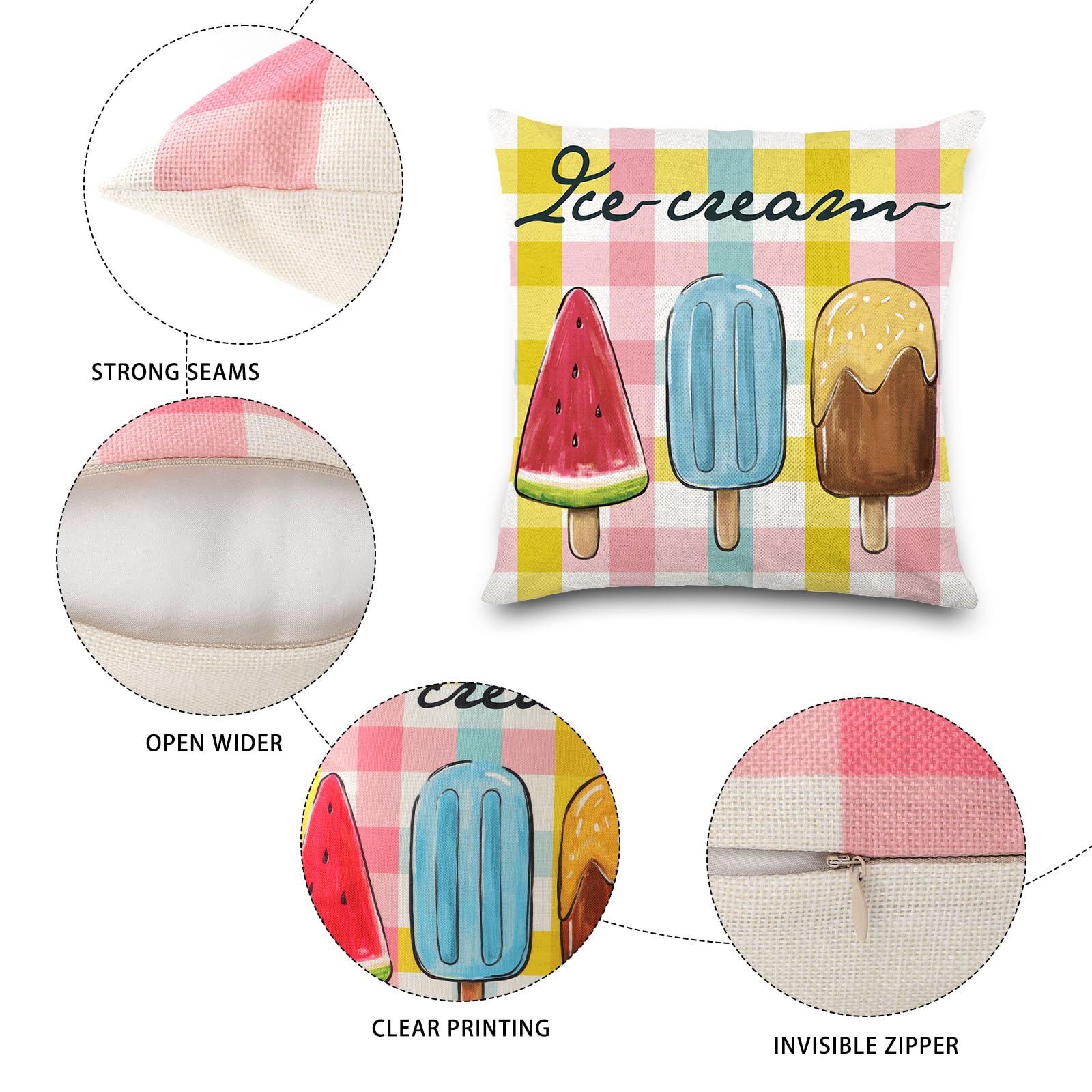 • 【Premium Materials】Our ice cream pillow cover is made of high-quality linen fabric, soft and comfortable, is resistant and fadeless to wear and tear without worrying about pilling or damage, child and pet friendly. Pillow cases can be machine washed separately, cold water can be gently circulated, each wash will be as clean as new.