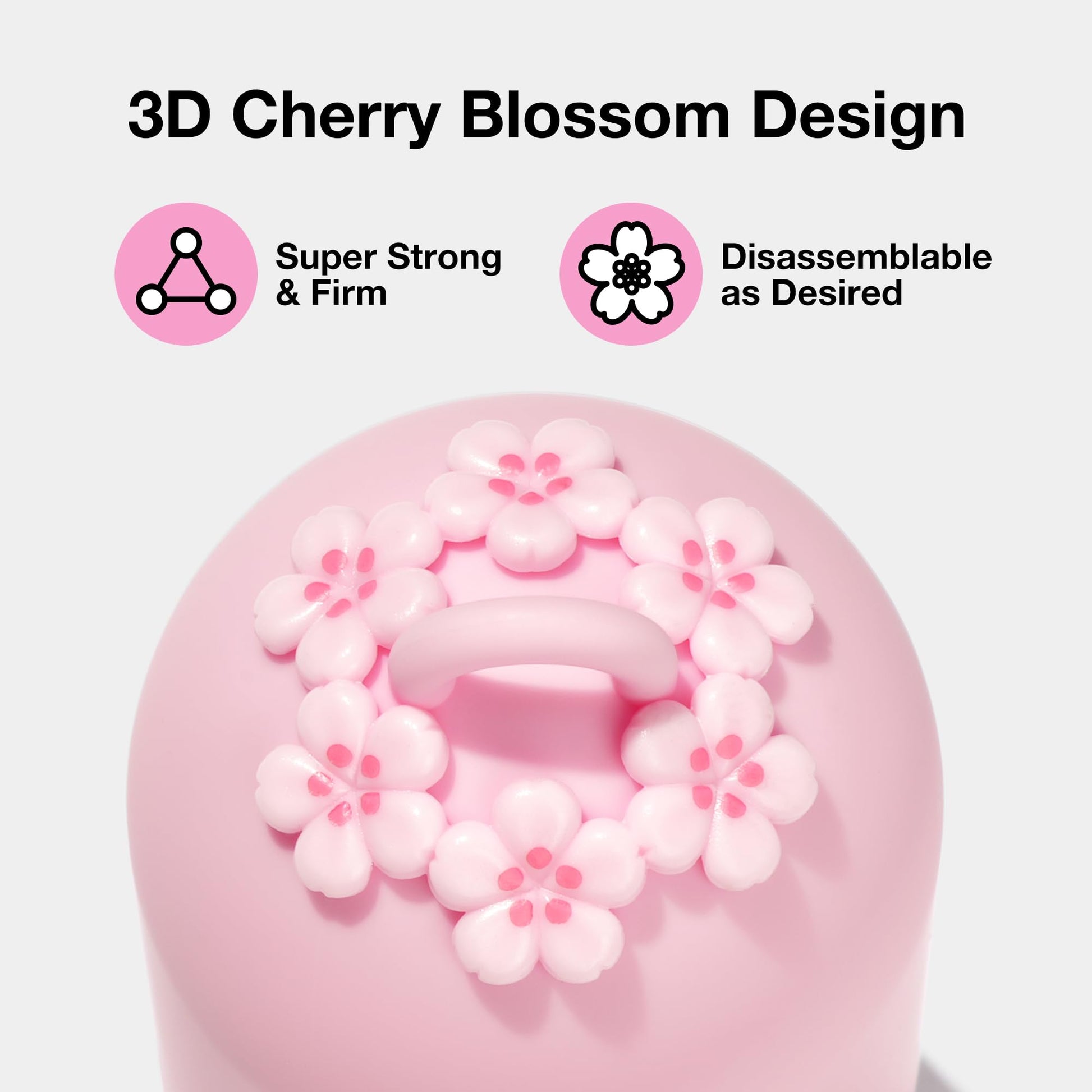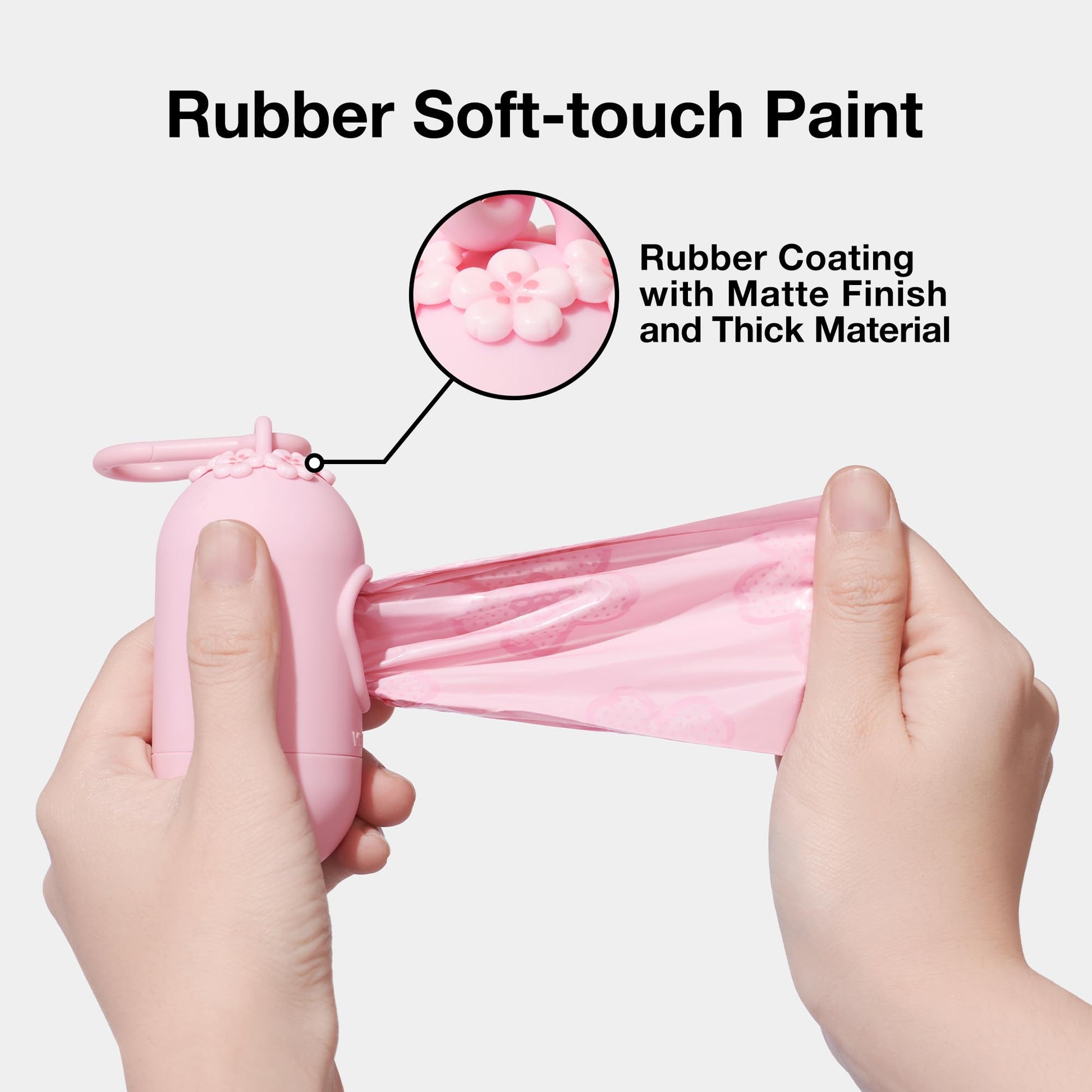 - CHERRY BLOSSOM DESIGN: A 3D three-dimensional flower head is designed on top of the dispenser using a frosted process. The pink color of cherry blossoms was chosen as the main color. The pattern of cherry blossoms is designed on the bag