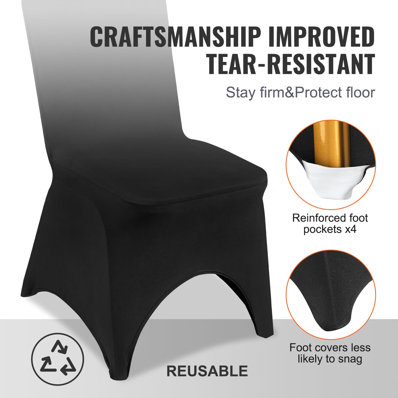 VEVOR 50 Pcs Black Chair Covers Polyester Spandex Stretch Slipcovers for Wedding Party Dining Banquet Arched-Front Chair Covers