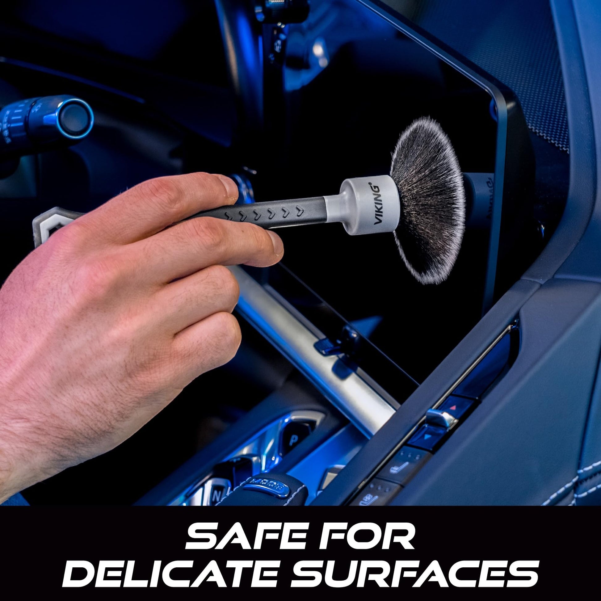 - Premium, feather-soft synthetic bristles gently clean all automotive interior surfaces
