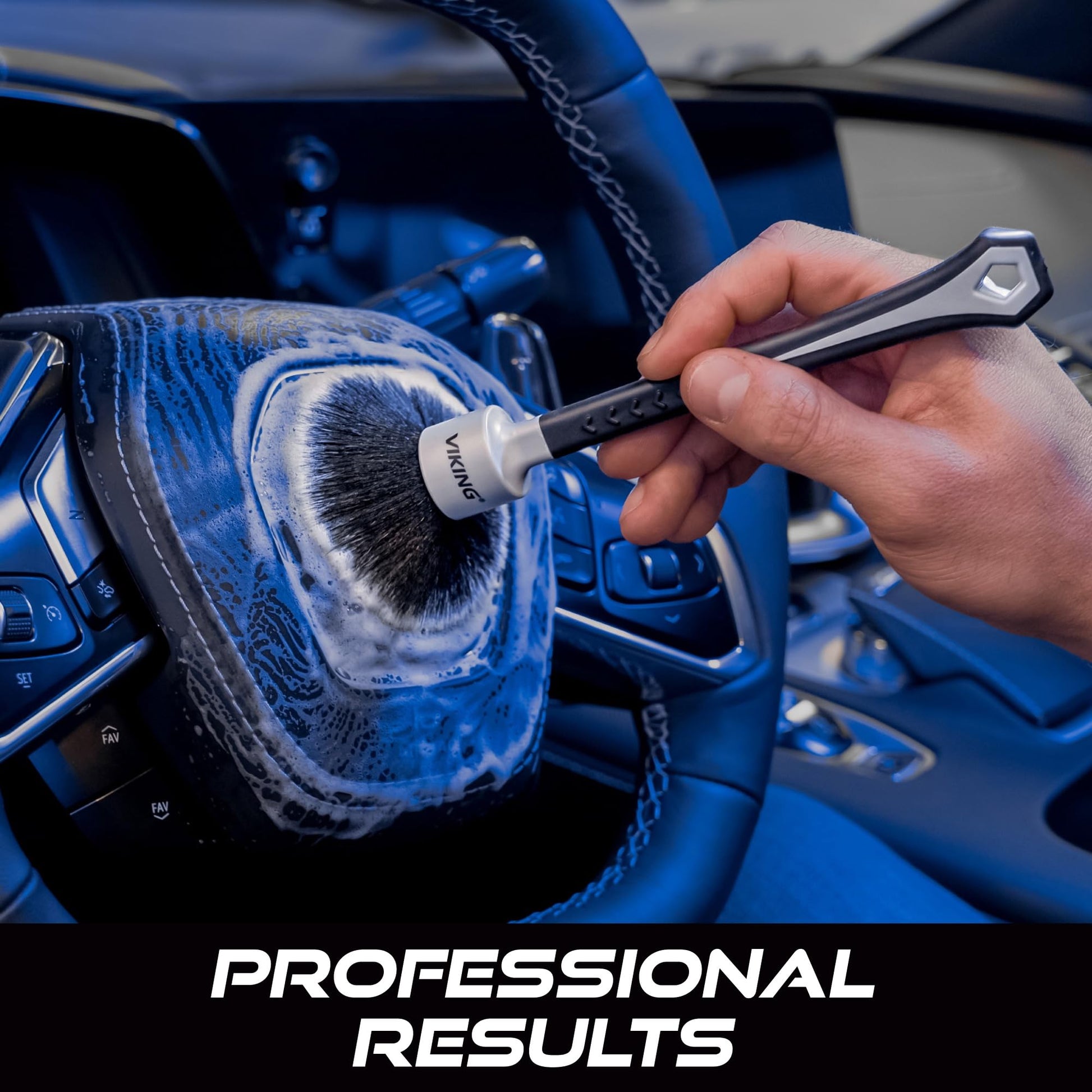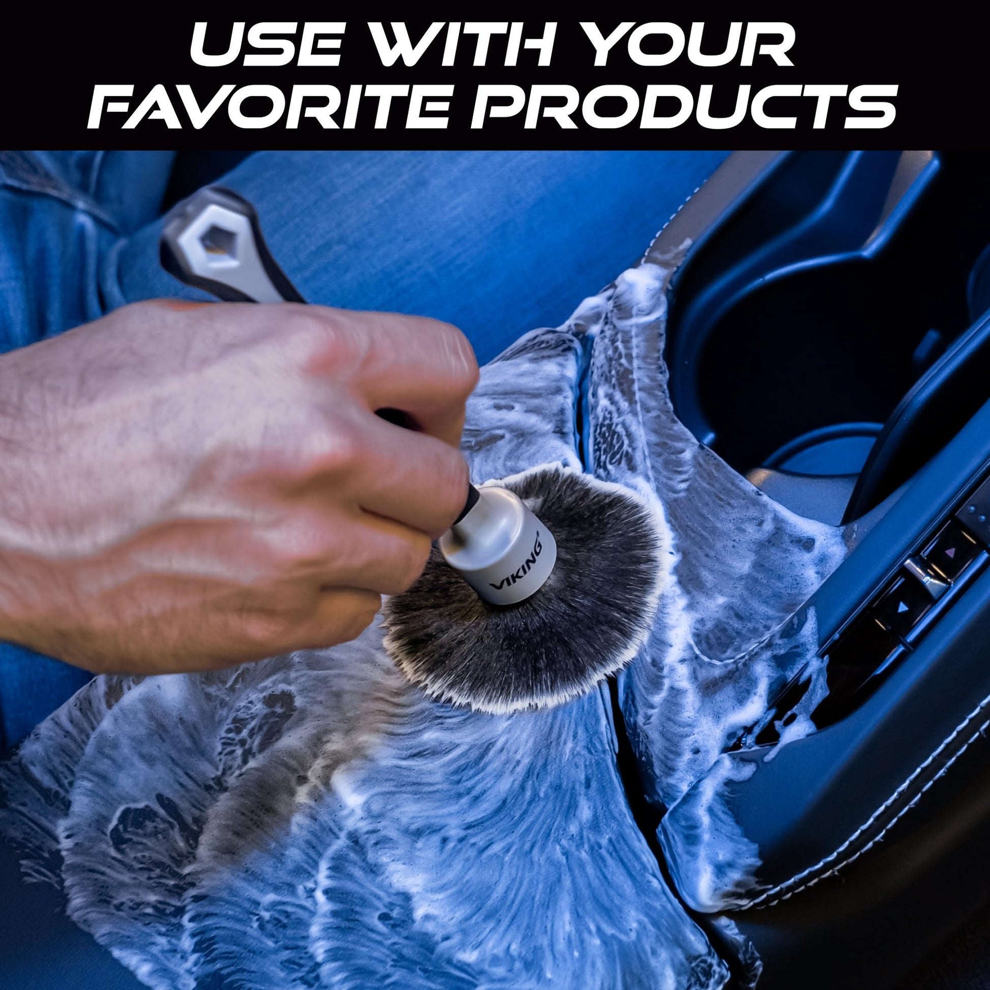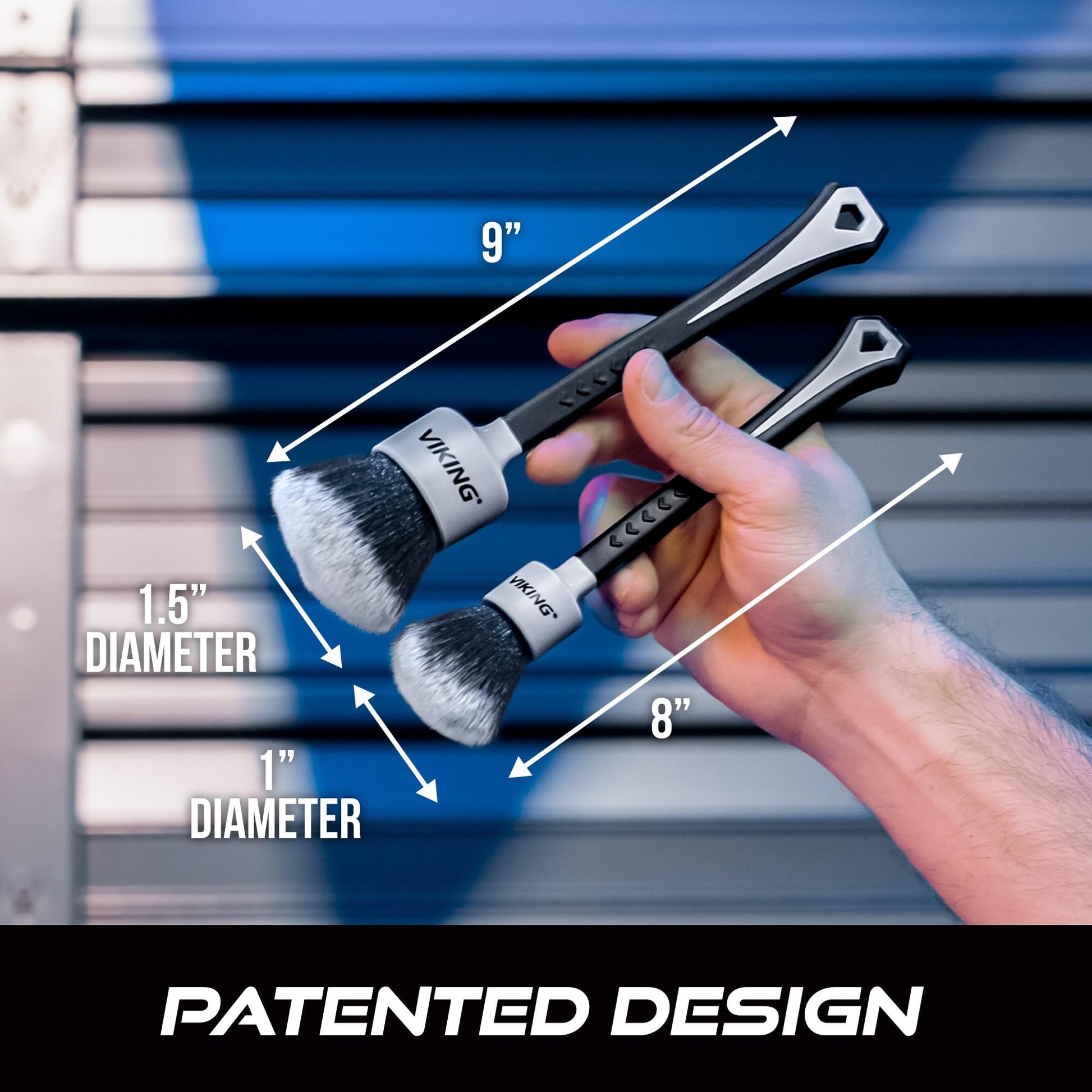 VIKING Car Detailing Brush Set for Car Cleaning Kit, Super-Soft Bristles for Interior Detail, Black/Grey, Includes Medium 1 Inch Diameter and Large 1.5 Inch Diameter Brush Heads, 2 Pack