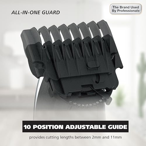 Details: The Wahl Pro Series Stainless Steel Cordless Rechargeable Beard Trimmer for Men, featuring the close cutting Forever BladeTM. With its Black Diamond Hard Carbon Coating, this trimmer blade cuts smoother and stays cooler during grooming sessions. It’s near-zero gap blade design delivers a 4x closer cut compared to first-generation Wahl trimmer blades. Crafted for ultimate comfort and control, this trimmer boasts a stainless-steel body and a comfortable no-slip silicone grip, providing rugged protection and an ergonomic tactile feel. Experience months of hassle-free grooming with Lithium Ion 2.0 + technology, offering an impressive 3.5 hours of continuous runtime on a full charge. For added travel charging convenience, this kit includes a USB charging cable. Plus, this beard trimmer for men ensures minimal charge loss during storage, ensuring it's always ready when you need it. Trim with confidence in any environment, as this trimmer is fully waterproof, allowing for use in the shower and easy cleanup at the sink. Achieve your desired style with the included 7 individual guide combs - 6 T-blade guide combs ranging in cutting lengths between 1/16” to 1/2”, and a 10-position adjustable guide comb providing cutting lengths between 2mm and 11mm, versatility is at your fingertips. Trust in the brand professionals have relied on since 1919. Note: We test our Wahl beard and hair trimmers for cutting performance prior to packaging with an hygienic fiber. We do our best to clean the product to remove any testing particles, but it is possible a few may remain. They are not hair and can be simply wiped off.