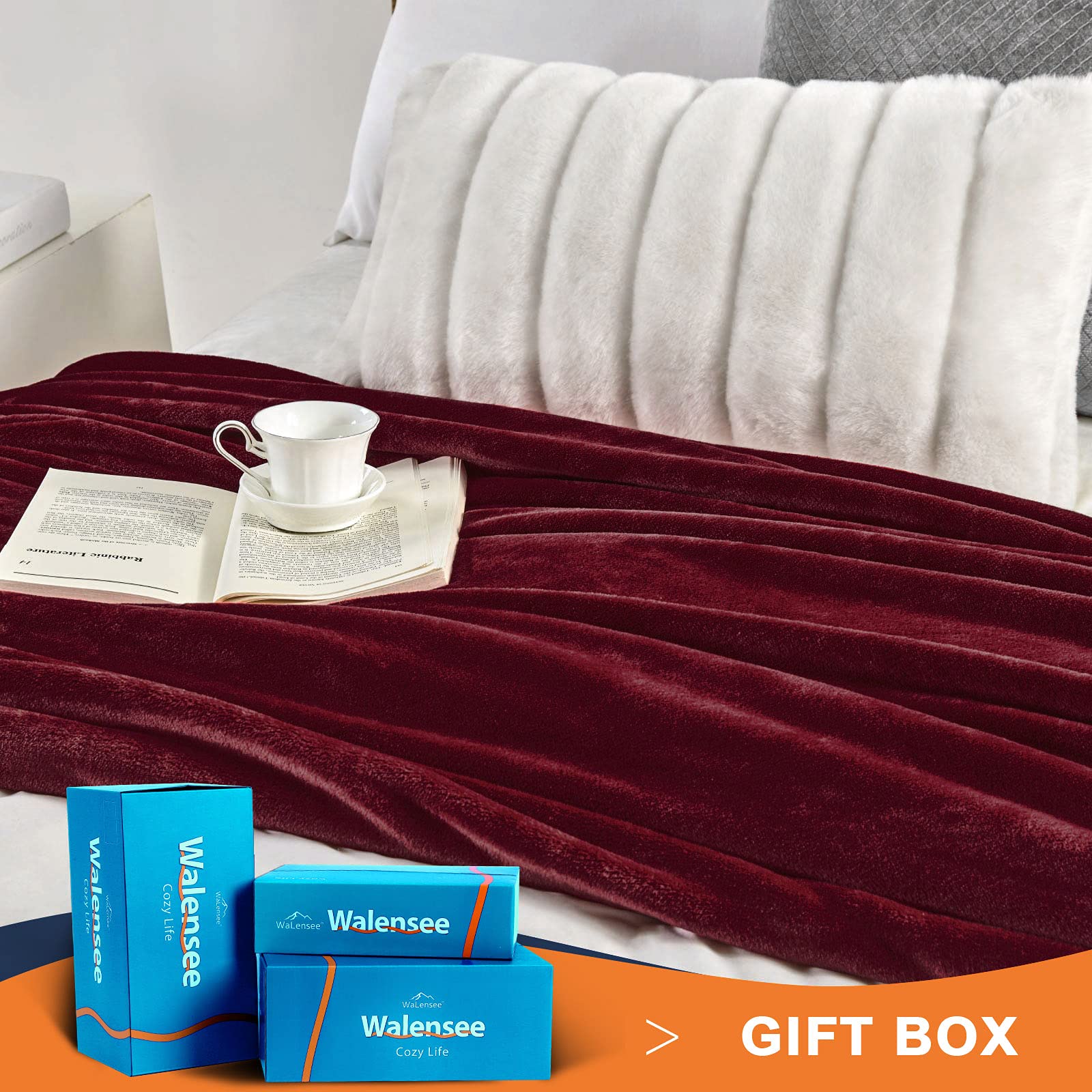 Walensee Burgundy Red Fleece Blanket Plush Throw Fuzzy Lightweight (Throw Size 50x60 Burgundy) Super Soft Microfiber Flannel Blankets for Couch, Bed, Sofa Ultra Warm and Cozy for All Seasons