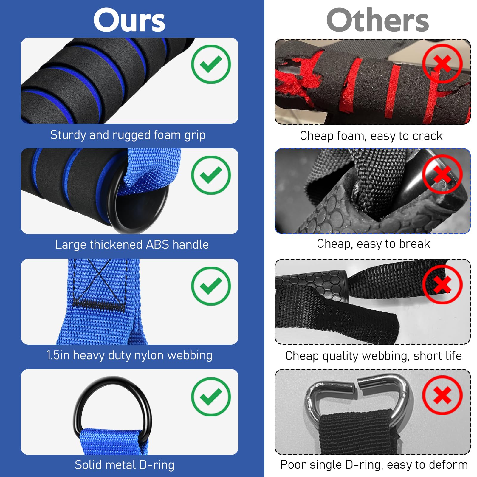- Ultra Heavy Duty Exercise Handles - Engineered with unwavering strength and durability, our cable handles are built to withstand extremely 600lbs weights. Crafted from strong braided nylon straps, they are built to withstand rigorous workouts and offer long-lasting performance. Solid D-ring handles can maximize your workout performance, allowing you to unleash your full potential!