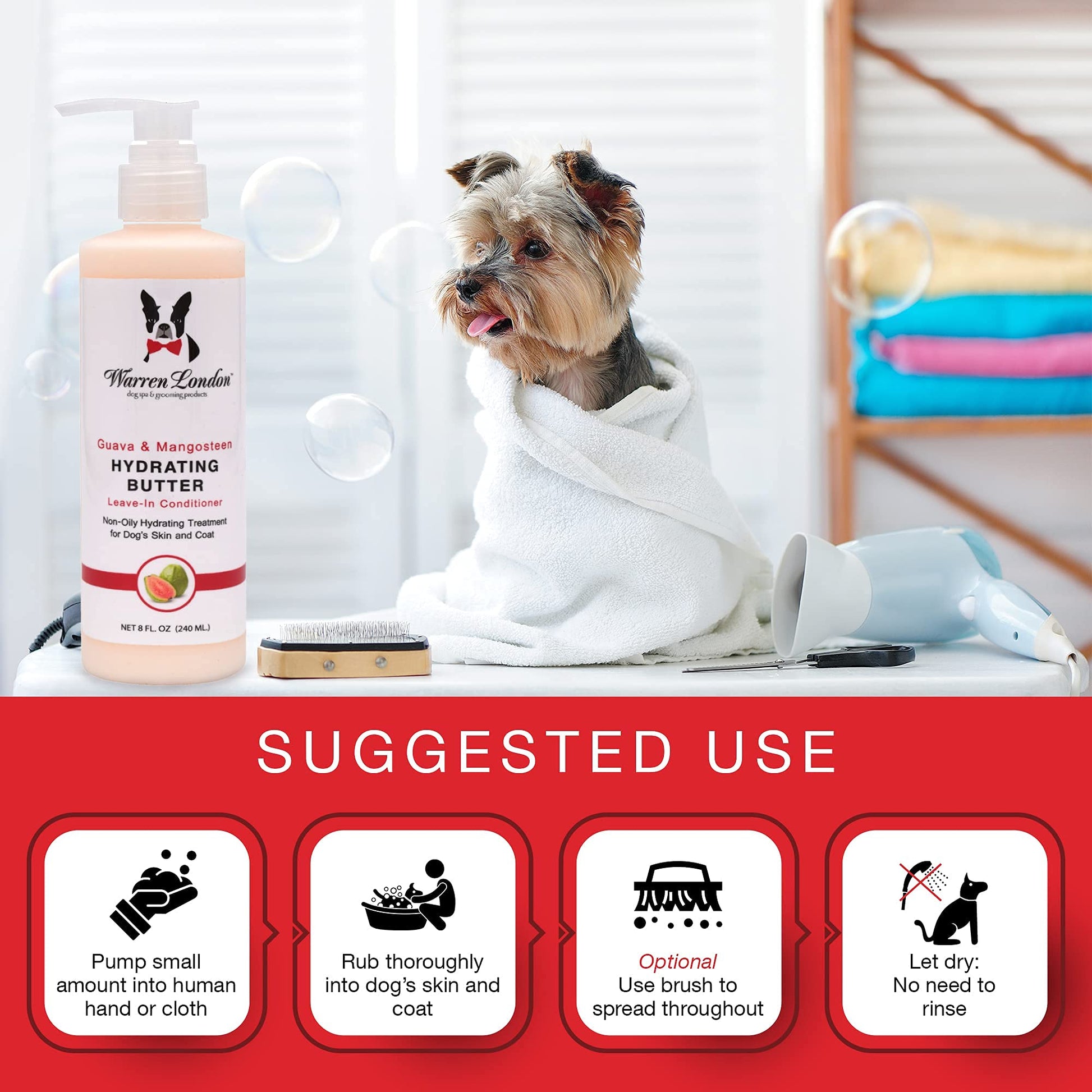Warren London Hydrating Butter Leave in Pet Conditioner for Dogs | Lotion for Skin and Coat | Aloe Puppy & Dog Conditioner for Hair Detangler, Dry Skin, & Pet Fur Dandruff | Made in USA | Guava 8oz