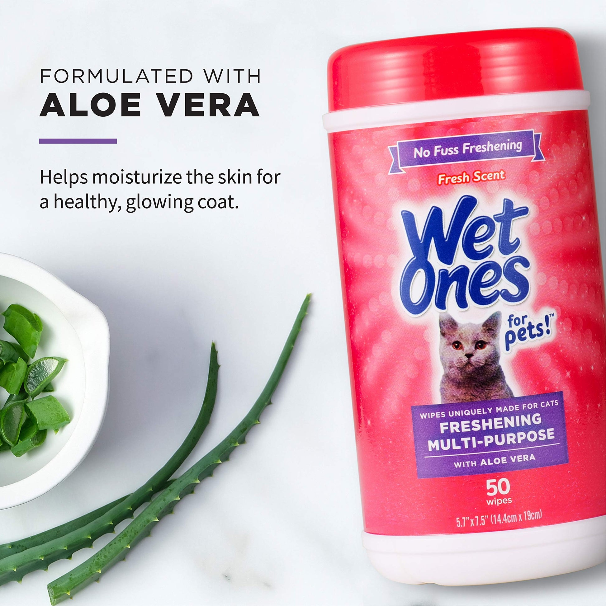 - Enriched with Soothing Aloe Vera — These cat face wipes and kitten wipes include Aloe Vera to help nourish and moisturize your cat's skin and coat. Choose Wet Ones cat wet wipes for a soothing clean that leaves your pet feeling healthy and comfortable.