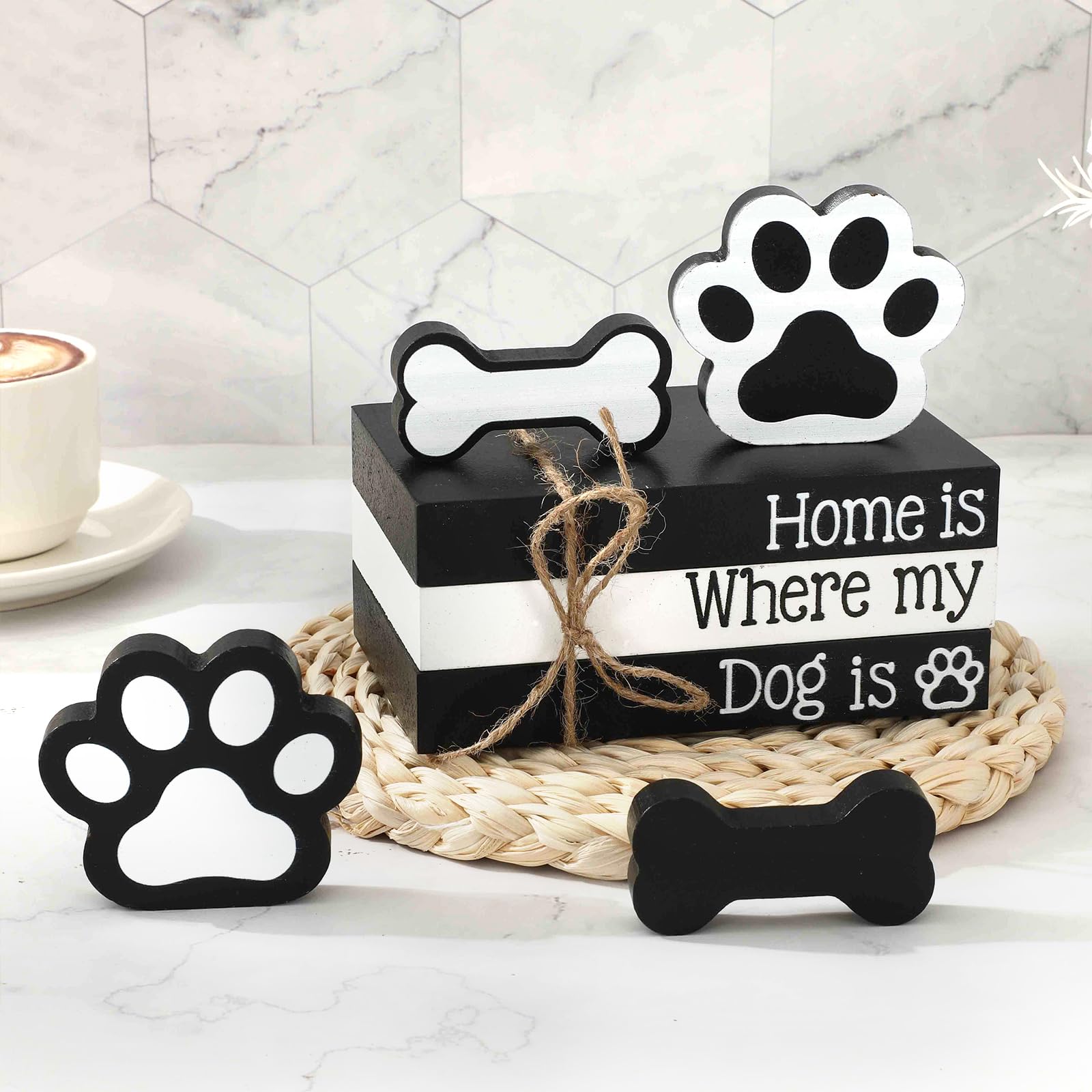 Whaline 7Pcs Dog Wooden Tiered Tray Decor Faux Stacked Books Dog Paw Bone Decorative Table Centerpiece Block Signs for Party Home Room Kitchen Dining Table Shelf Decoration