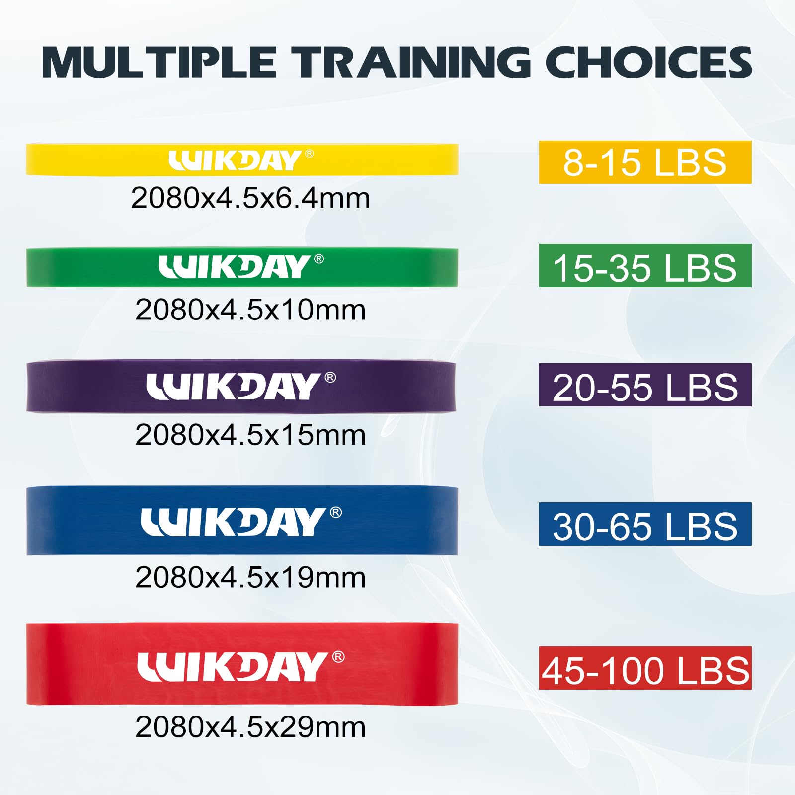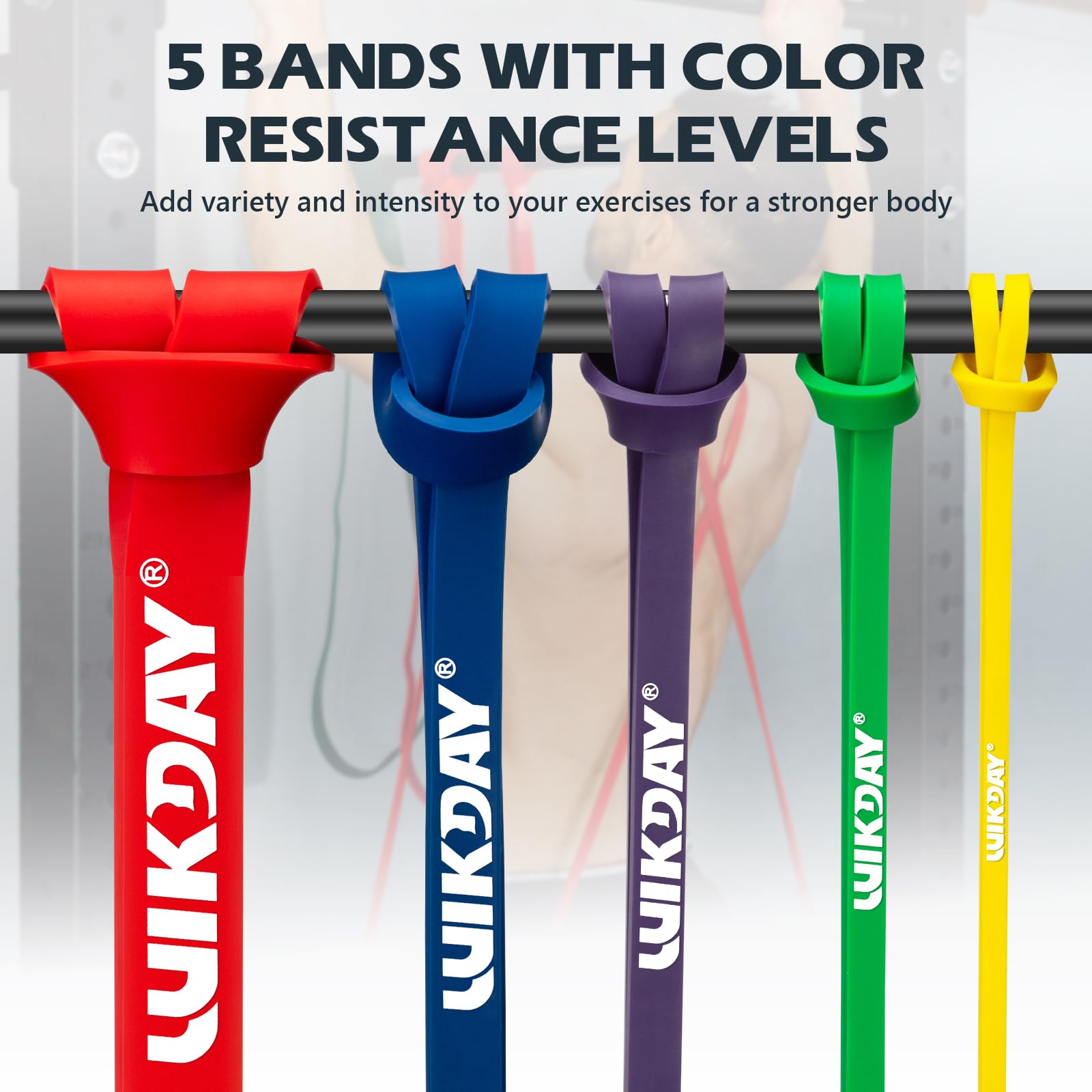 WIKDAY Resistance Bands for Working Out, Exercise Bands, Workout Bands, Pull Up Assistance Bands for Body Stretching Training Physical Therapy Muscle Training for Men & Women Multicolour (8-100lbs)