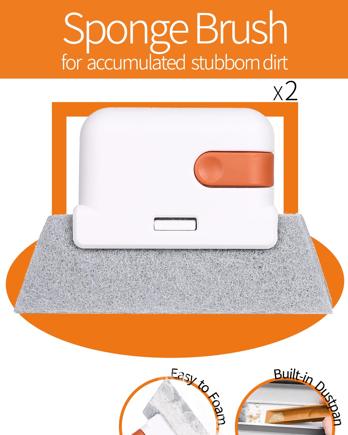 - 🏡【Cleaning Expert】: Our brushes for cleaning are perfect for removing dust from cabinets, tables, sinks, window seals, glass door tracks, window sill, sliding doors, shower door tracks, toilets, and faucets. The Ergonomic handle design makes it labor-saving to clean all stubborn dirt. Package Includes 2x Hard Bristles Brush, 2x Gap Brush, 2x Sponge Brush, and 2x Sponge Brush Replacement Head.