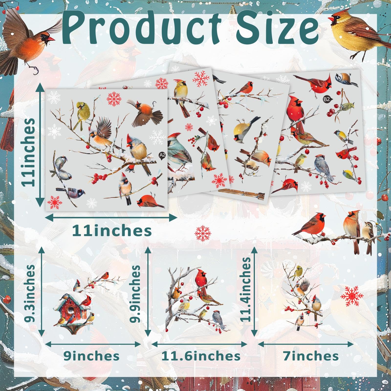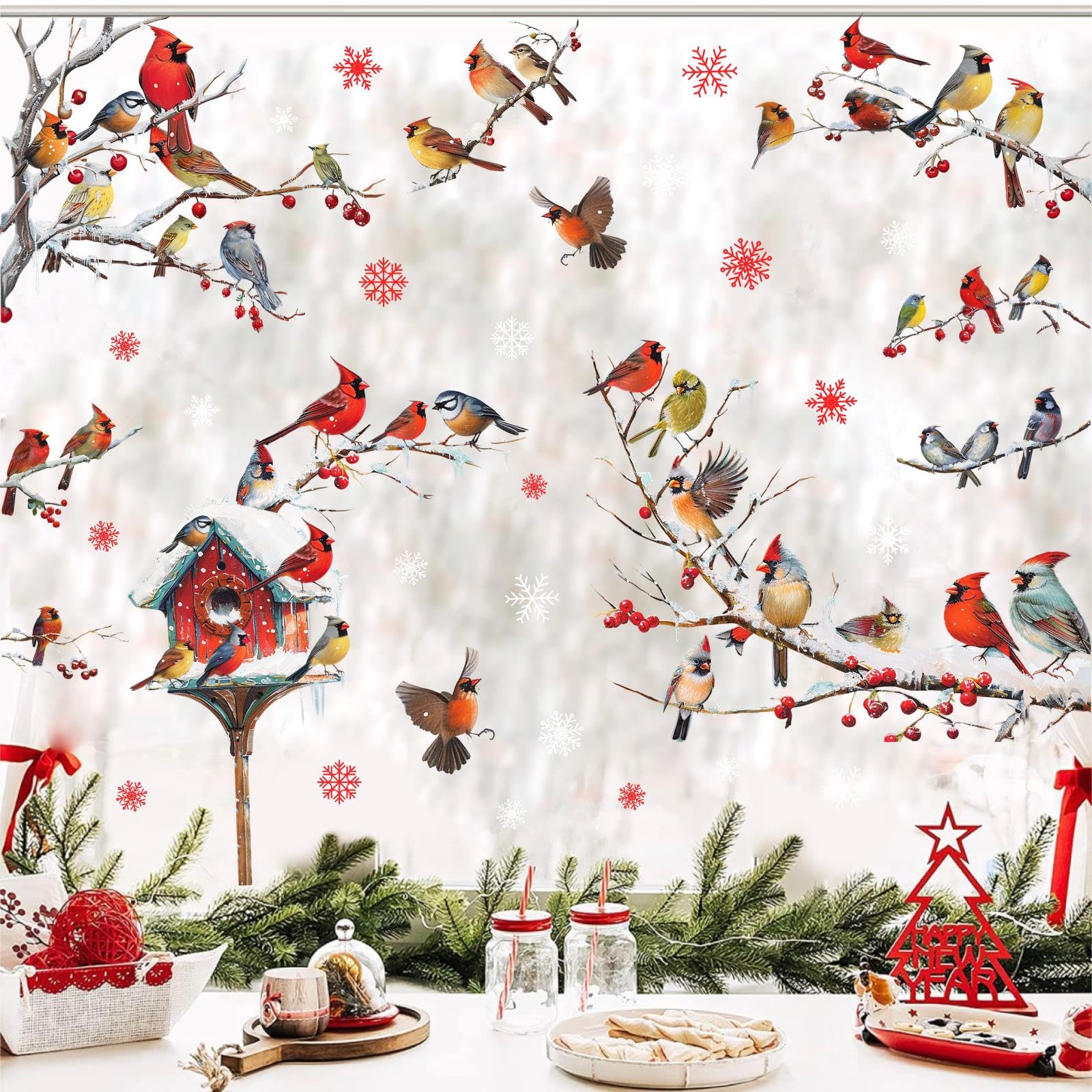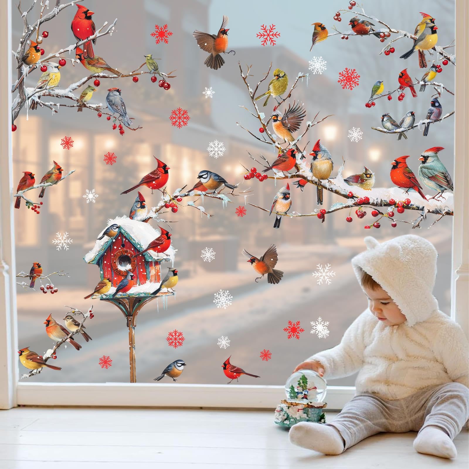 - Double-Sided Printed: With red birds,tree branch and snowflakes design,you can clearly see the pattern from the front and back of the glass.You are free to combine the Christmas Window Clings,which can add more warm Christmas Holiday atmosphere