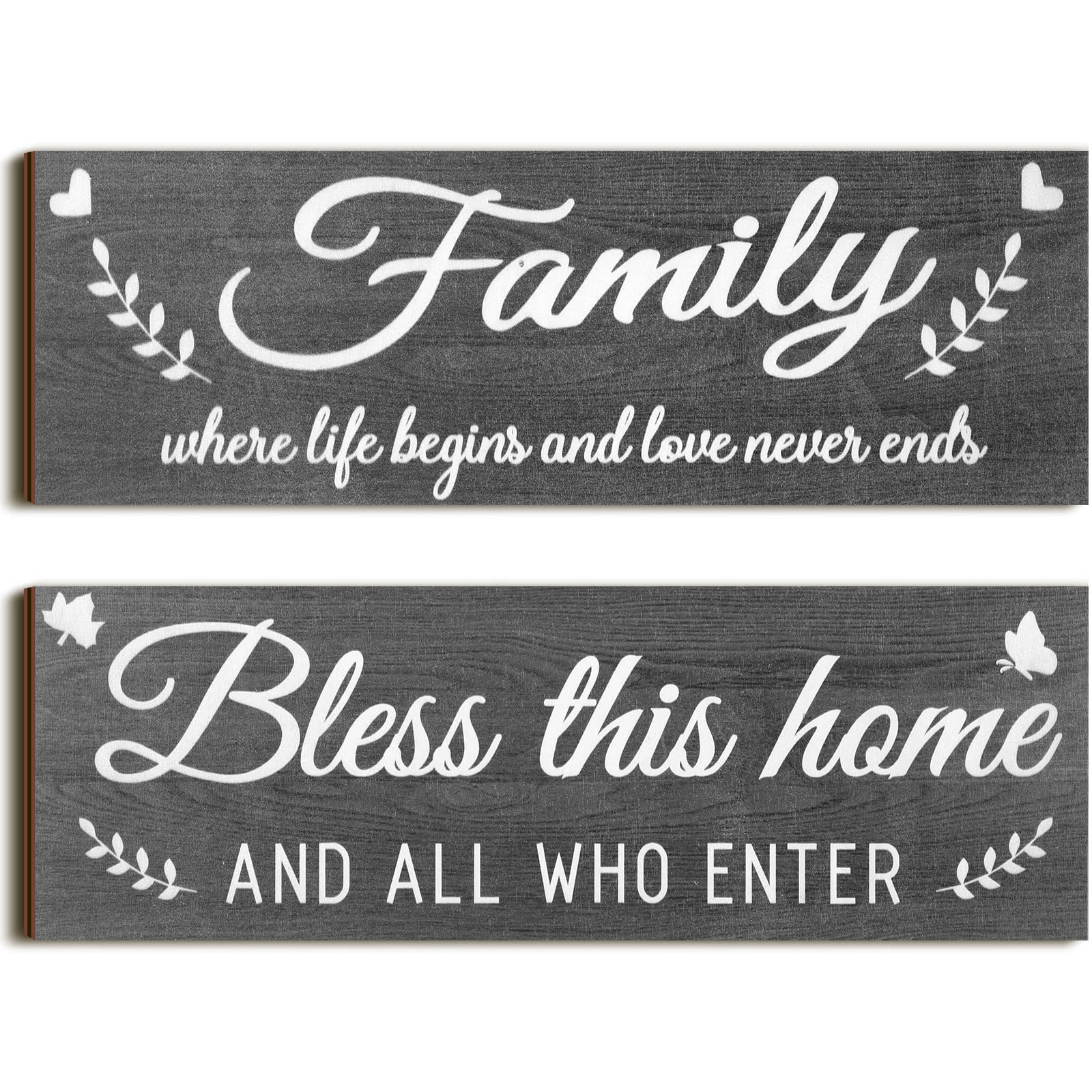 Wooden Family Signs Rustic Bless This Home Wall Decor Wood Family Decor Wall Art Farmhouse Entryway Sign Home Decoration for Bedroom Living Room Office Home Decor, 13.8 x 4.7 Inch (Dark Gray)