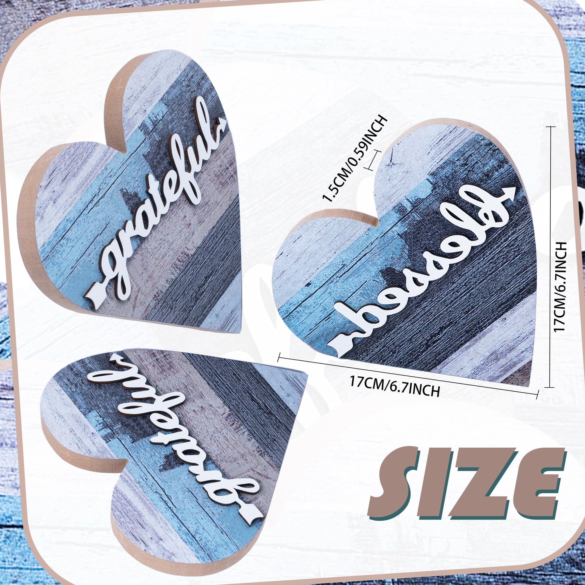 WTYONZEL 2 Pcs Rustic Wooden Table Heart Decor Signs for Home Decor - Farmhouse Valentine's Day Centerpiece, Freestanding Table Decor, Romantic Gifts (Grateful Style)
