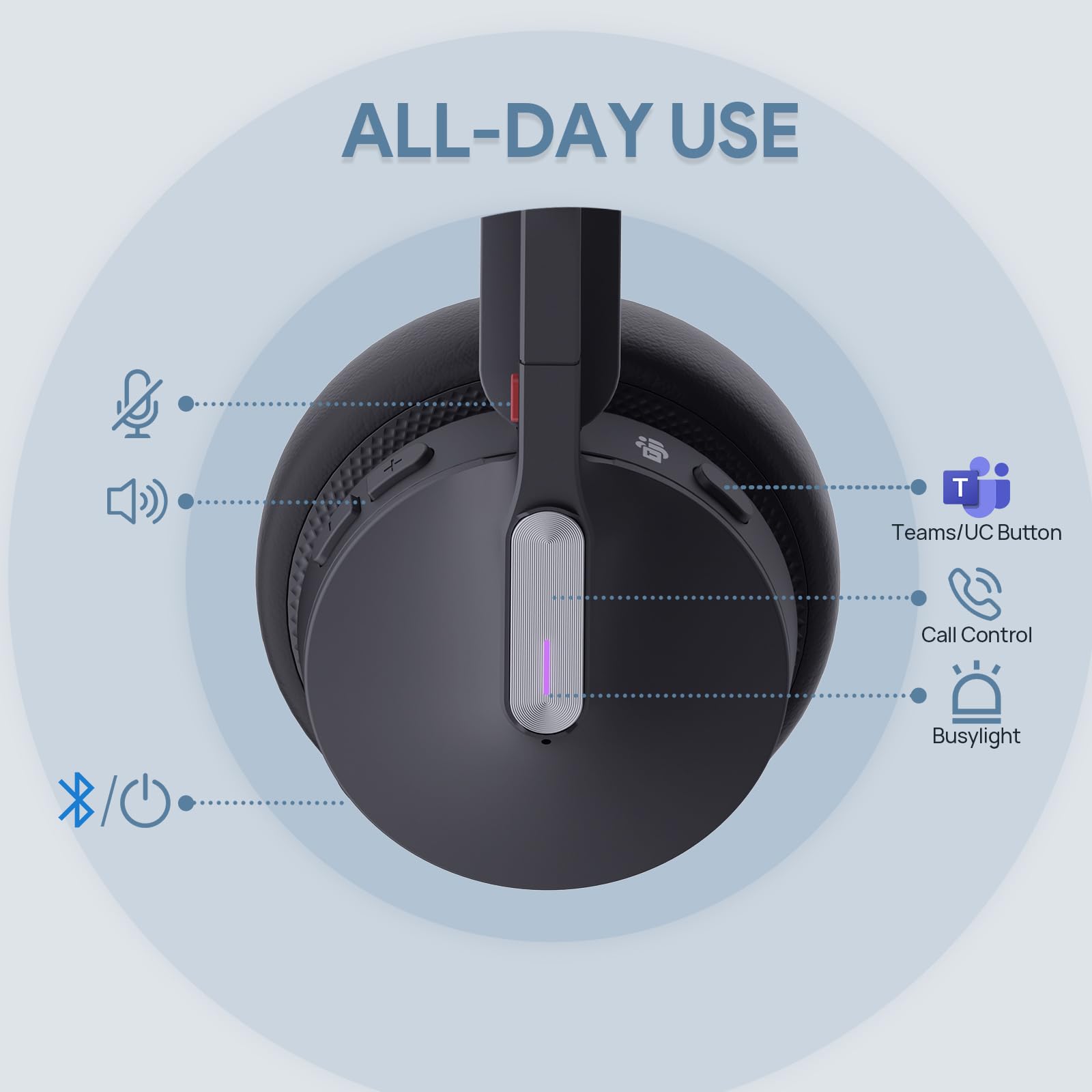 - Professional Work Headset:Teams one-click conference, the wireless headset with mic comes with a busylight, phone control function, and quick mute setting, making communication more convenient.