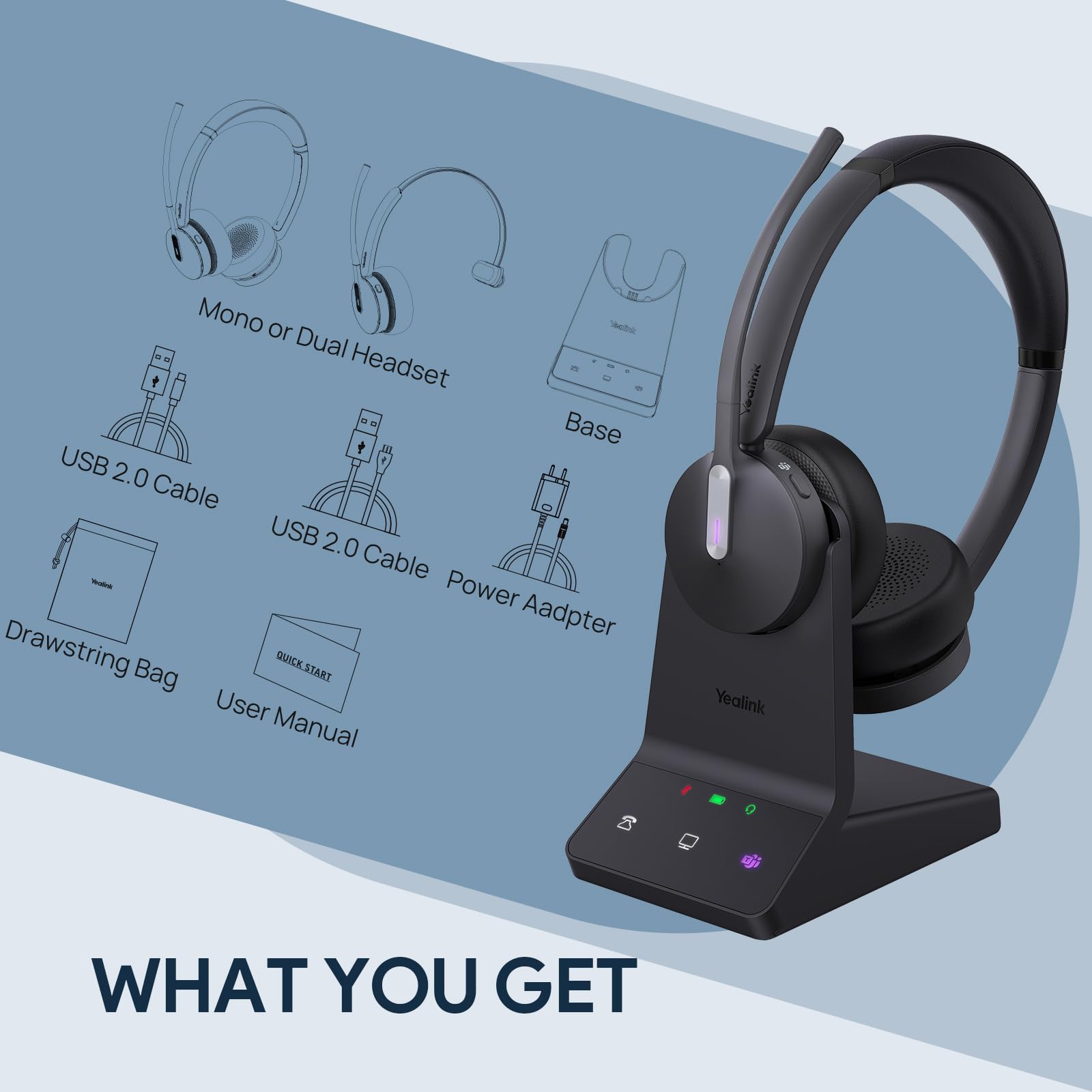 Yealink WH64 Dual Teams DECT & Bluetooth Wireless Headset, 606ft Range, Microsoft Certified, On Ear Work Wired Headphone with 3X Noise Cancelling Mic, 32 Talk Time, Office Desk IP Phone, PC,Computer