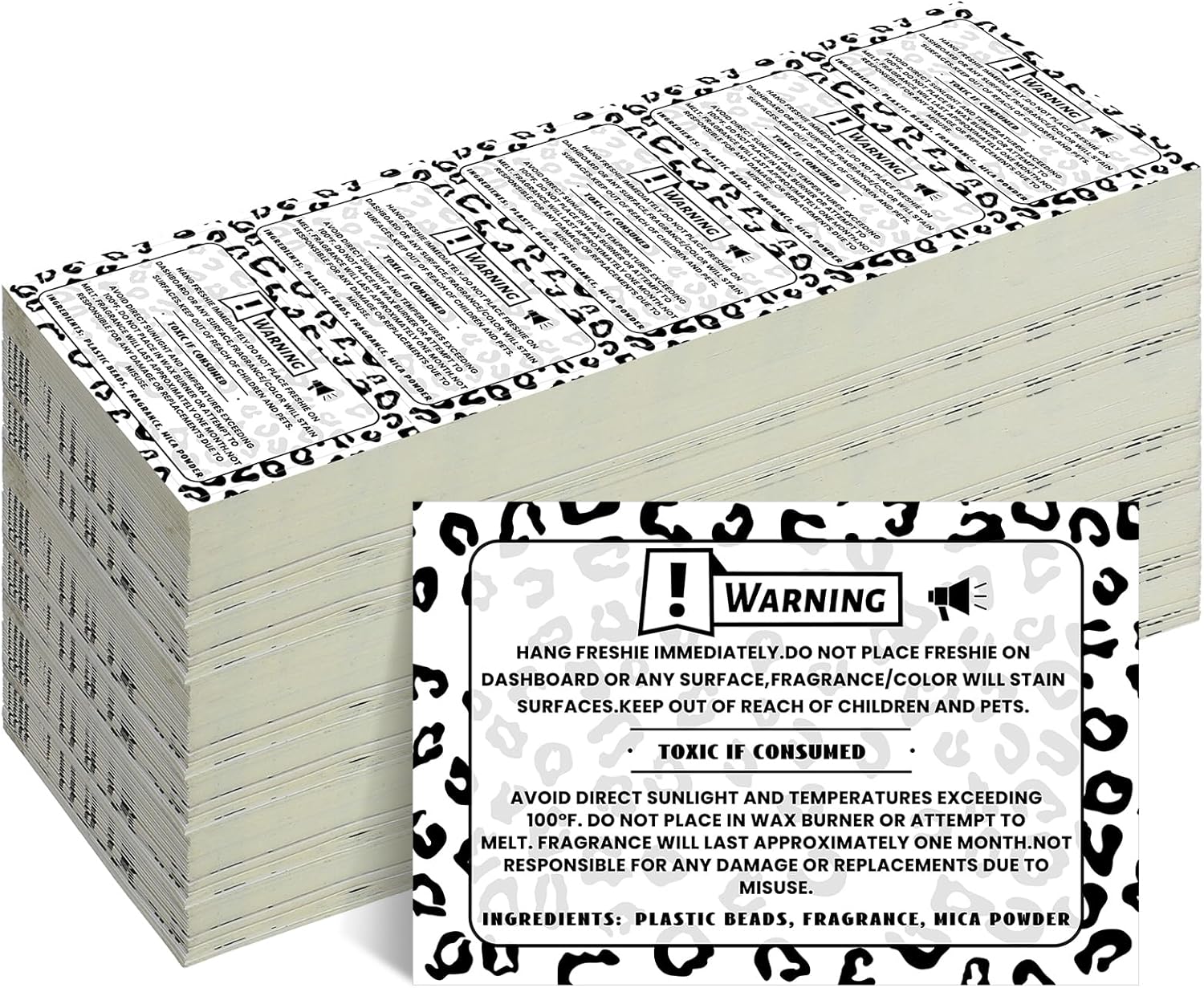 Yeaqee 500 Pcs Freshie Warning Label Stickers 2.25 x 1.25 Inches Waterproof Freshies Care Instructions Labels for Car Supplies DIY Crafts and Beads Silicone Molds with Leopard Background Design