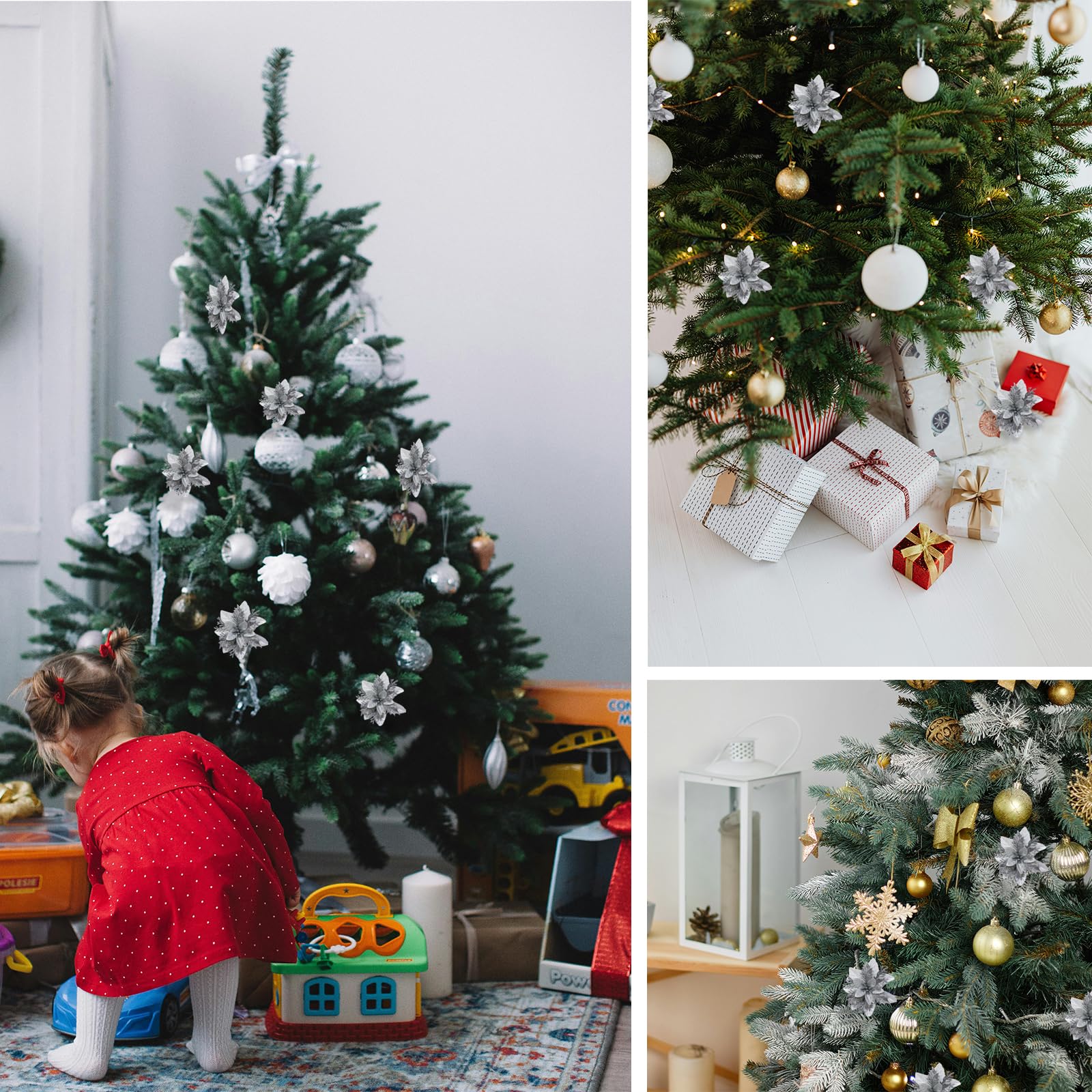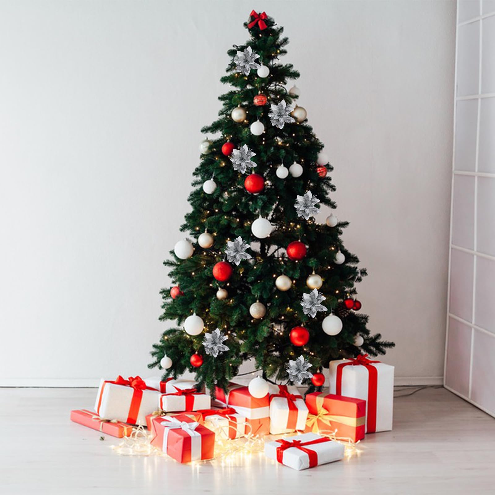 - SILK CHRISTMAS GLITTER ORNAMENTS: The Christmas flower ornaments are made of silk and plastic. They can be applied anywhere you want and are covered with glitter, which will make the tree more attractive and add to the holiday atmosphere.