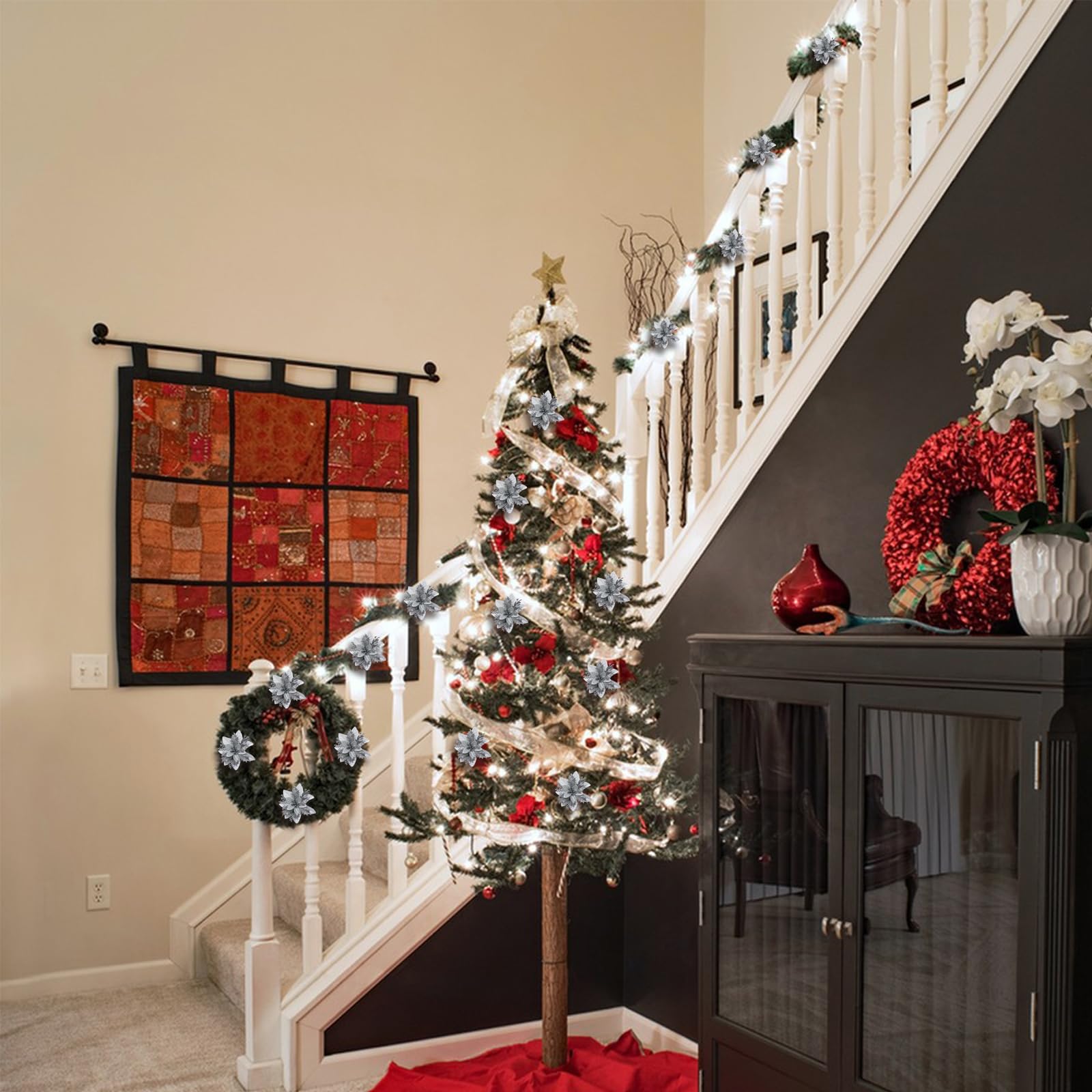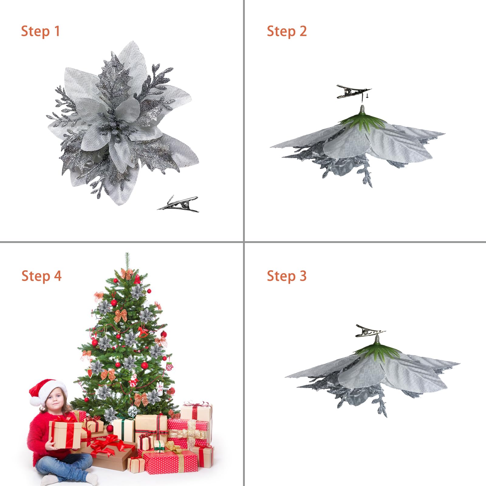 - ENHANCING CHRISTMAS TREE ELEGANCE AND HOLIDAY SPIRIT: These poinsettias make the Christmas tree shine brightly! Their glittering blooms look stunning and are perfect for filling in larger, bare areas on the tree. These festive flowers enhance the tree's elegance and charm, adding an extra layer of holiday spirit. Definitely, these Christmas flowers offer exceptional value for your money!