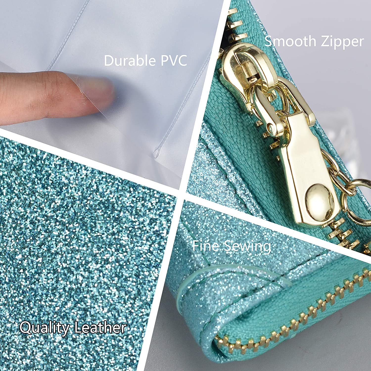 YUHAN PRETTY Womens Credit Card Holder Wallet RFID Leather Small ID Card Case (20 Card Slots - Glitter Teal)